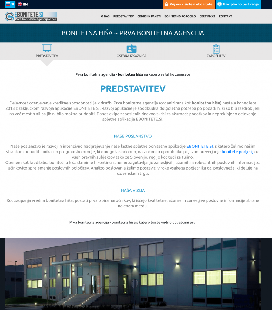 Primer SEO teksta v vsebini kjer je predstavljena bonitetna hiša