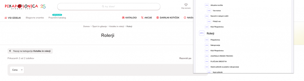 Na zgornji sliki lahko vidite kako ima vrhunsko H oznake urejene spletna trgovina Pikapolonica.si, na povezavi, kjer se ponujajo rolerji.