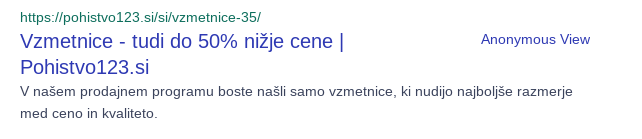 Na zgornji sliki je prikaza meta opis za spletno vsebino, na kateri so obljavljene vzmetnice spletne trgovine Pohištvo123.si, katere najrazličnejša ležišča so ravno eden izmed paradnih konjev njihove spletne prodaje. Če ste prebrali zgornje poglavje, lahko opazite, da je beseda “vzmetnice” uporabljena tudi v SEO naslovu spletne trgovine Pohistvo123.si.
